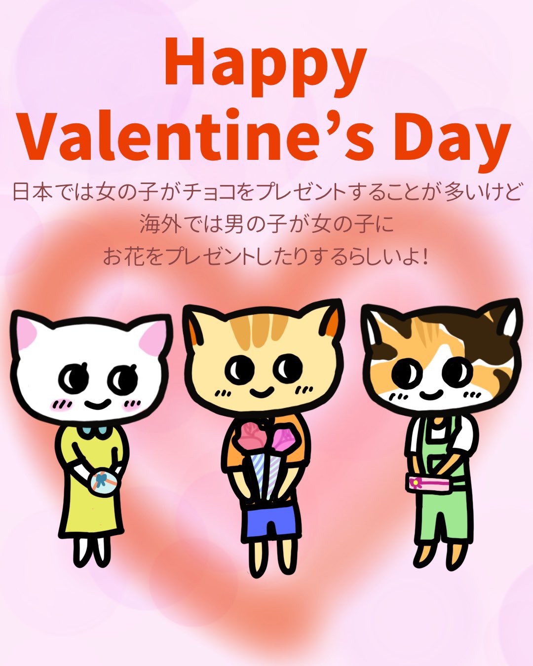 うまくいくねこ公式ツイッター 日本では女の子がチョコをプレゼントすることが多いけど 海外では男の子が女の子にお花をプレゼントしたりするらしいよ うまくいくねこ うまくいく イラスト ポジティブ ゆるキャラ Valentinesday21 バレンタイン